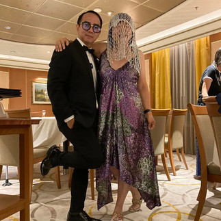 Since we docked in Malaysia, followed by Thailand, Dubai and Oman, most everyone on the ship has a new wardrobe. Not just any wardrobe, local Asian and middle eastern garb. I thought that my wife and I were the exception but apparently not. Last night was a formal night and so folks ditched the tuxedos and evening gowns in favor of their new and amazingly interesting threads. This is my buddy Kevin.