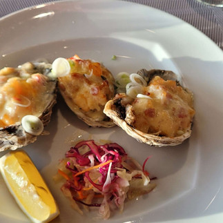In the meantime, we decided to take our new friends, Scott and Anita to dinner at one of the specialty restaurants, the Bayou. We'd already been about 5x and know it's good. We had a 5pm reservation to ensure we got a window table to watch all the ship's. As promised, Scott and I wore our Jordanian head gear.